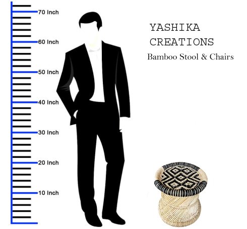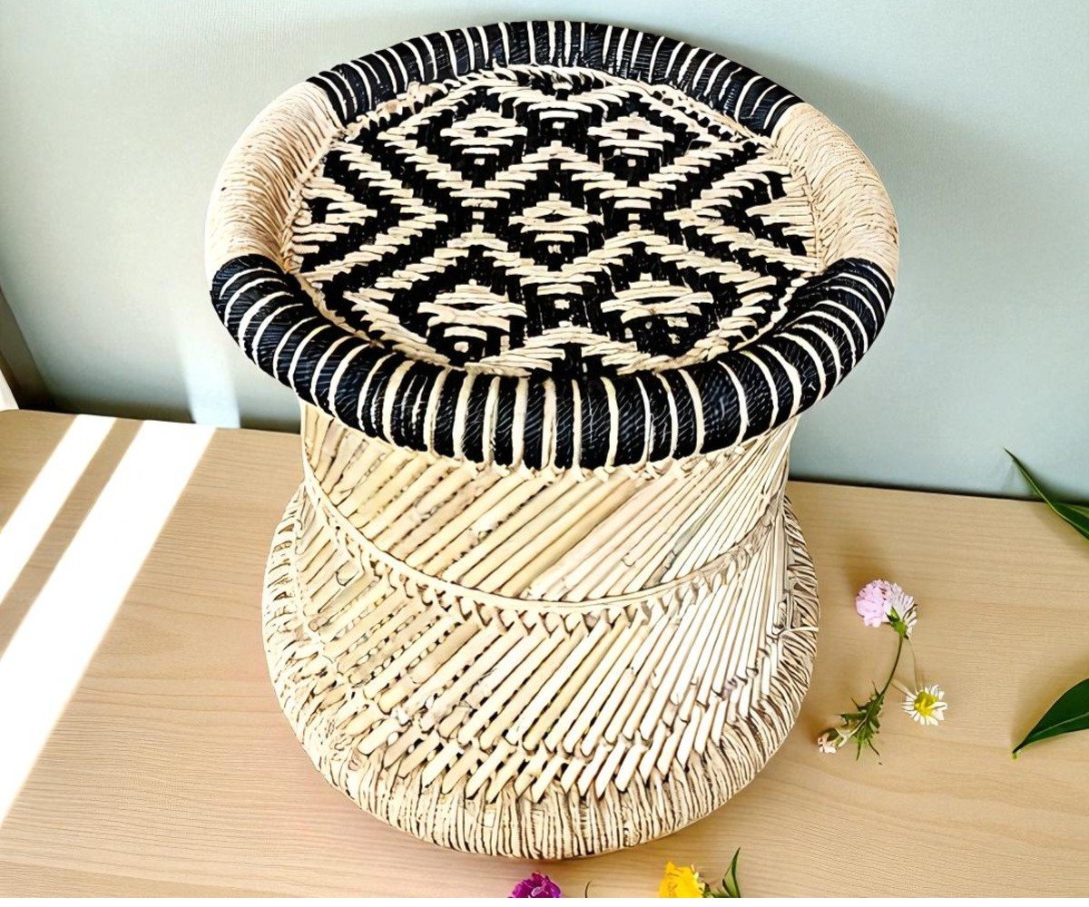 Natural Bamboo Stool Chair Mudda Stool with Black & Beige (15X15) Mudda, Muddi